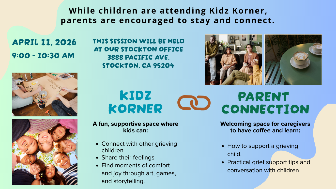 Join us for our upcoming Kidz Korner workshop & Parent Grief session.